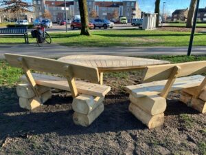 Dank je wel Gemeente Dongen! Wat een mooie aanwinst in de groene long van Dongen. René Broeders heeft zich gebogen over de keuze voor een duurzame variant van zitmeubilair en klimtoestellen op de groenstrook naast het fietspad. Met deze prachtige houten banken, tafel en speelkolossen kunnen we er weer jaren tegen. Kom jij ze lekker uitproberen?